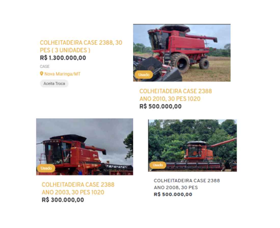 As máquinas estão juntas em nova maringa mt todas disponíveis pra visita,si o comprador quiser escolher pode escolher qual ele preferir