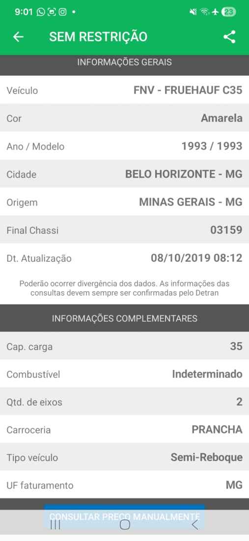 II - Reboque prancha, marca FHUEHAUF c35, anos 1993, renavam 00608548766, placa
