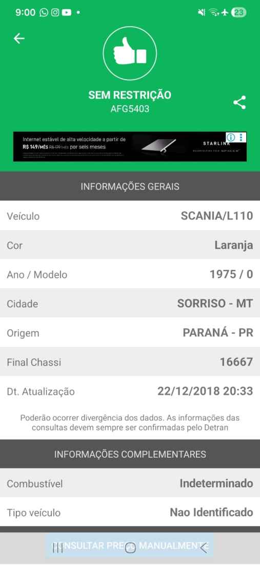 I - veículo caminhão trator Scania L110S, ano 1975, cor laranja, renavam 511950314, placa
