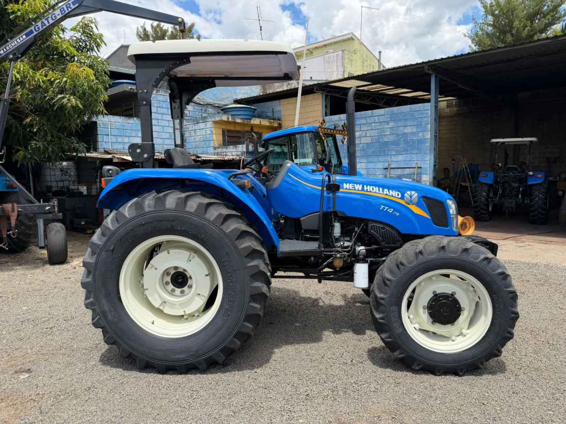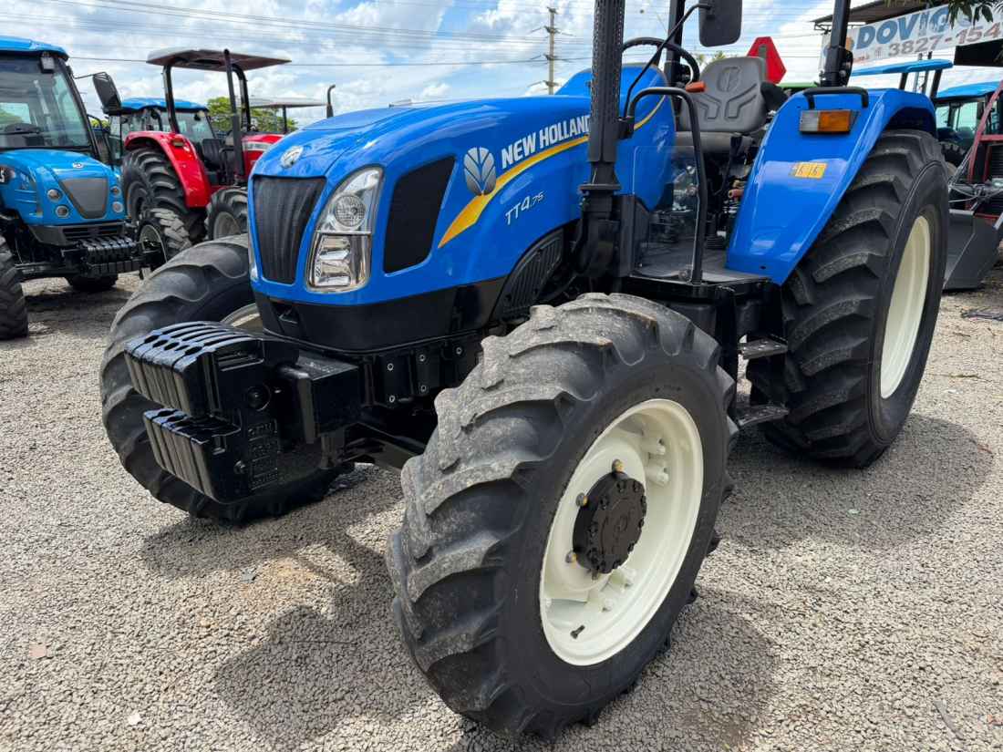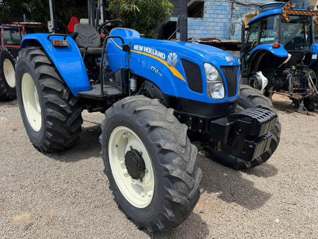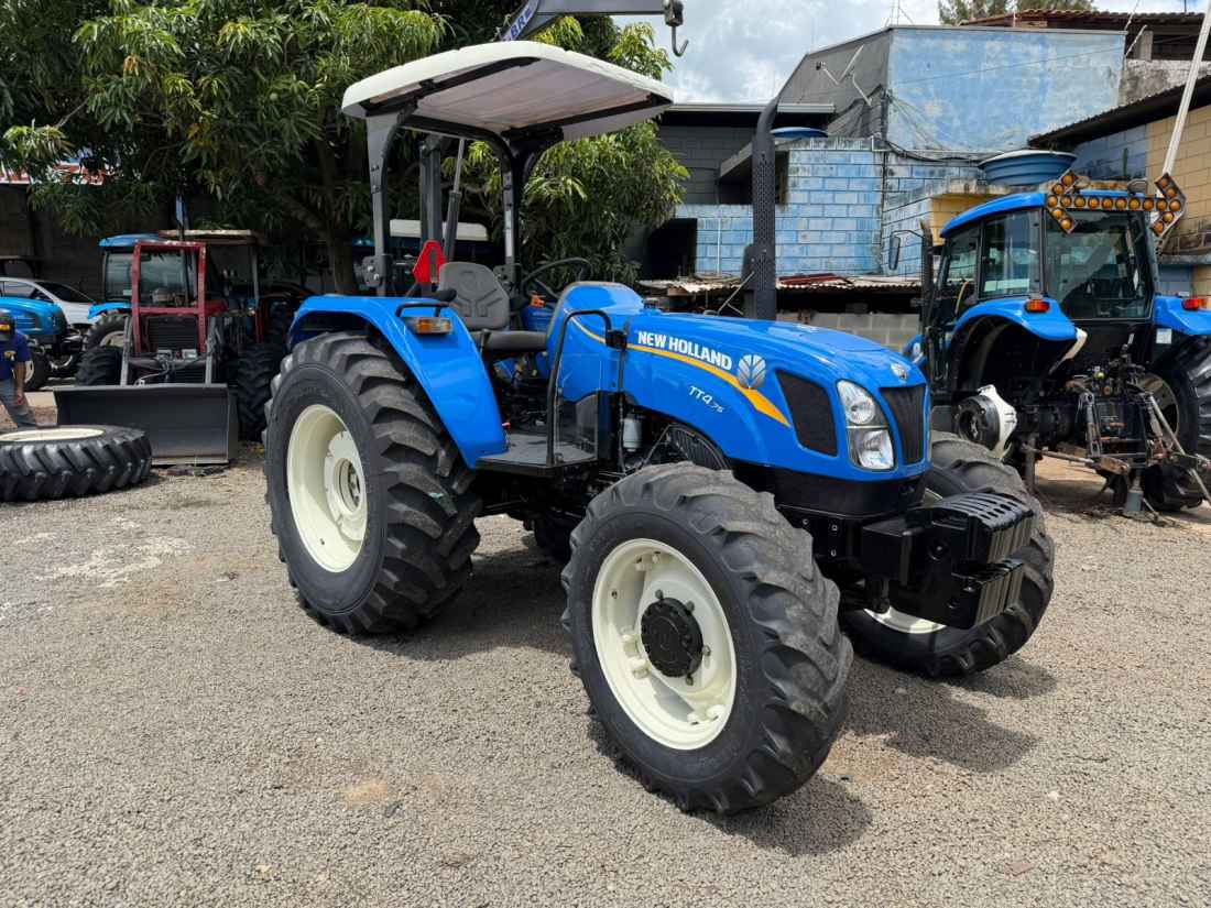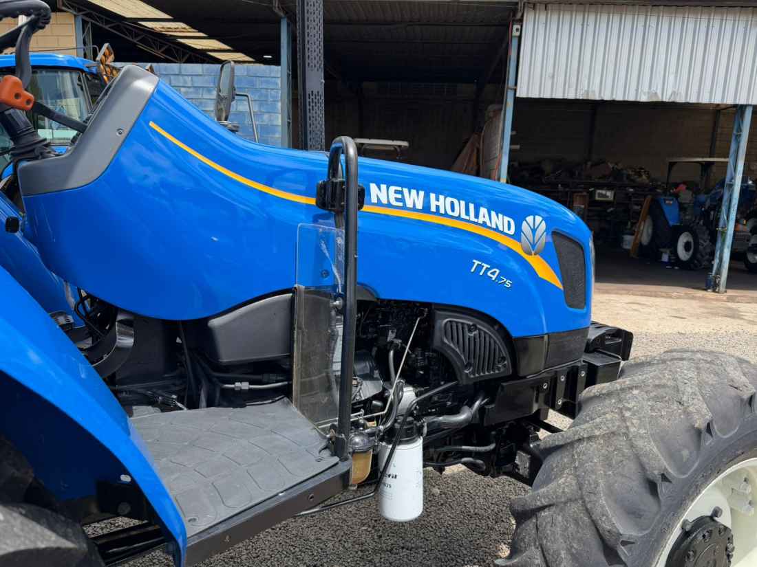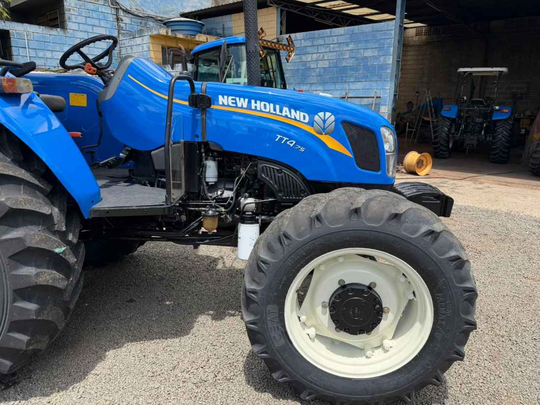 New Holland TT 4.75 4x4 Ano 2023 , Cod (01), motor FPT mecanico 3 cilindros turbo de fábrica com 78 cv de potência,transmissão com Reversor de marchas, comando hidráulico duplo de 4 saídas, contra pesos dianteiros e traseiros, equipamento encontra-se em excelente estado com apenas 1400 horas.